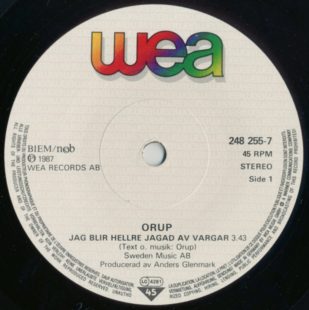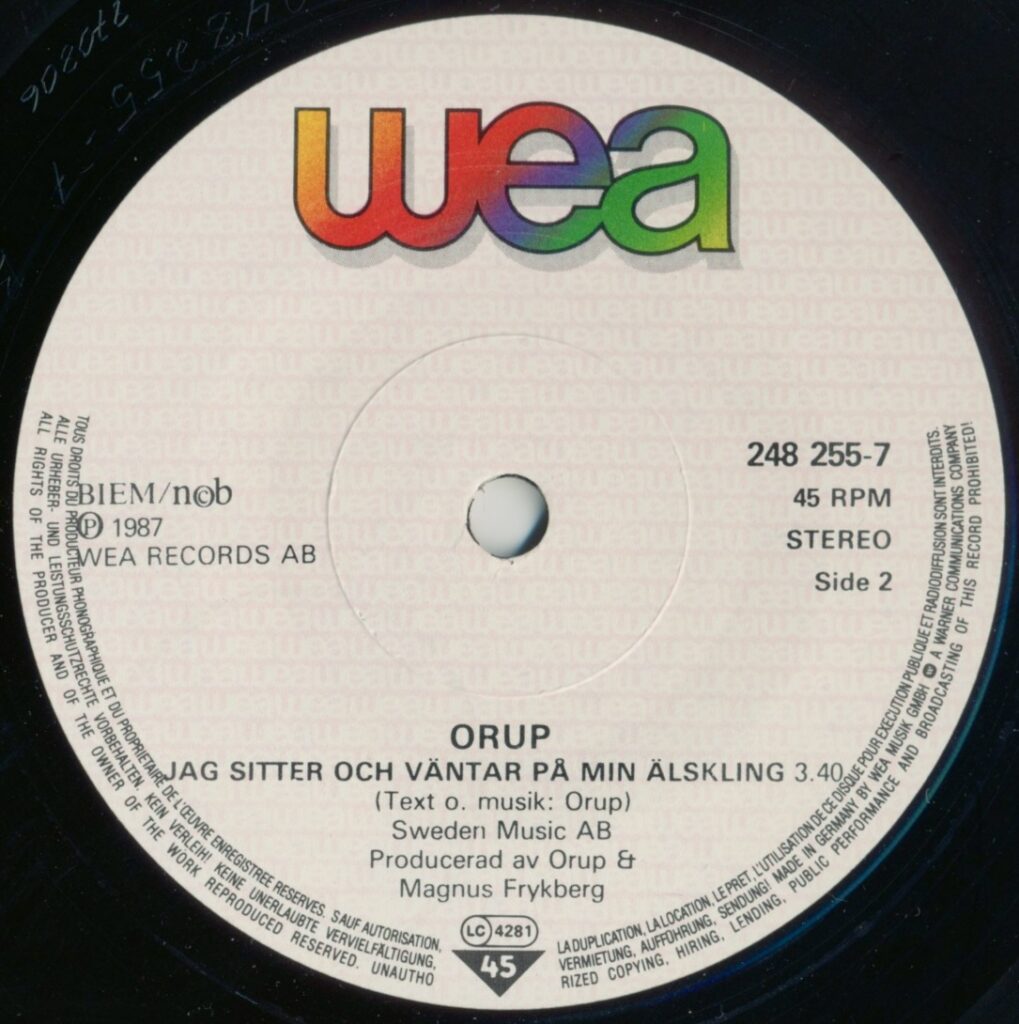 My copy: 7″, 45 RPM, Scandinavia, 1987, WEA / Sweden Music