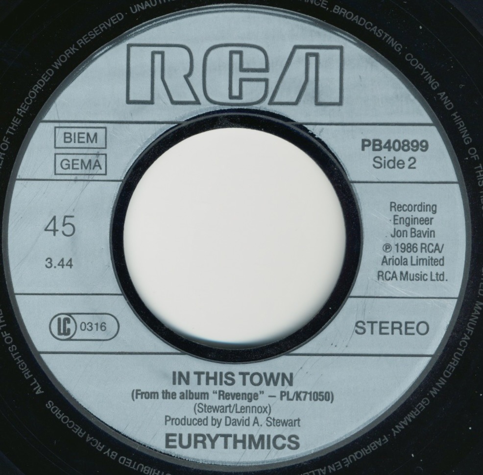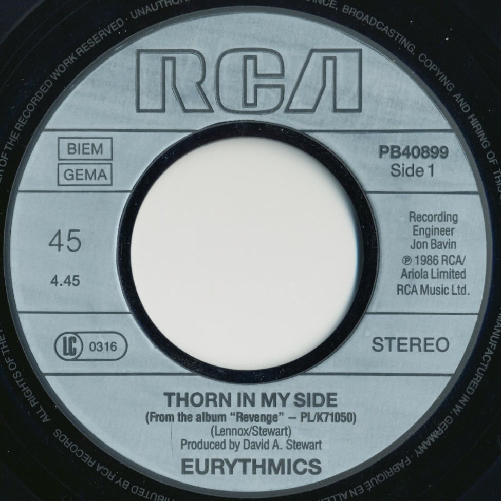 My copy: 7″, 45 RPM, Europe, 1986, RCA
